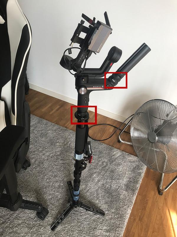 ist das ich unter der Platte kein Gewinde mehr für das kleine 3 Beinstativ habe, mit dem ich den Gimbal abstellen kann.