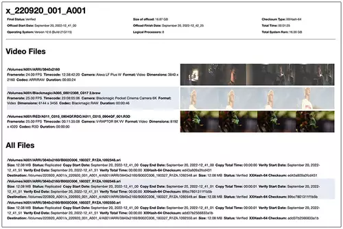 Das Tool verfügt über die branchenüblichen Prüfsummenoptionen xxHash-64, MD5, SHA-1, SHA-2 256, SHA-2 512 sowie über weitere Sicherheitsfunktionen wie die Überprüfung der Quellintegrität, die automatische Erkennung von Namenskollisionen und die intelligente Fehlererkennung. Die Einbeziehung von MHL-Dateien stellt sicher, dass die Dateien jederzeit überprüft werden können.