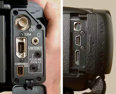 Interessant ist auch die Platzierung der Anschlüsse – sie sollten erreichbar sein, unabhängig ob mit Akku oder Netzstrom gedreht wird, ob vom Stativ oder aus der Hand. Befindet sich etwa der Firewireanschluss an einer Dockingstation, gibt es Probleme mit der Monitorvorschau wenn mit Stativ gearbeitet wird.
