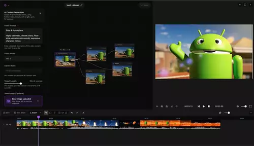 - Mosaic: Eine agentenbasierte Video-Editing-Plattform, die Veo 3 nutzt, um mit einem einzelnen Prompt und einem Startbild neue Videosequenzen zu generieren. Diese können bis zu 64 Sekunden lang sein und beinhalten native Audioausgabe.