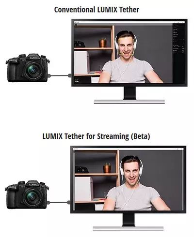 Damit auch (ausgewählte) Lumix Kameras für Live Streaming verwendet werden können, stellt Panasonic das kostenlose Tool "LUMIX Tether for Streaming" zur Verfügung, vorerst jedoch nur für PCs und als Beta-Version. Es basiert auf der Lumix Tether-Software, mit welcher sich Kameras via USB vom Computer aus fernsteuern lassen, bietet als spezielles Feature aber eine saubere Live View Ansicht ohne ein eingeblendetes Interface.