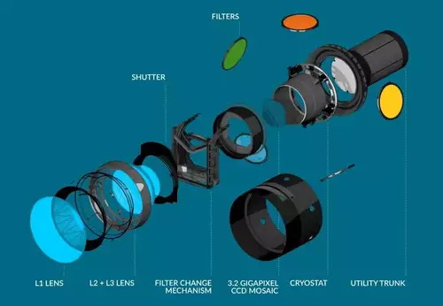 Die Bildwandler-Ebene besteht aus 189 4Kx4K CCD-Sensoren, die in insgesamt 21 quadratischen 3x3 Feldern angeordnet sind. Die Bildfläche ist extrem ebenmäßig konstruiert, mit maximal einer Zehntel Haaresbreite Varianz. Um Bildrauschen zu minimieren, wird das System auf etwa -100 °C gekühlt.