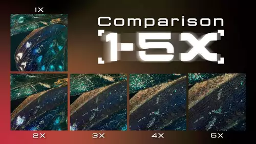 Damit ändert sich auch der Arbeitsabstand entsprechend. Im 1x-Modus sind von der Frontlinse zum Motiv 150 mm Luft, in der extremen 5x-Vergrößerung sind es nur noch 65 mm. Die Naheinstellgrenze (der Abstand zwischen Motiv und Sensorebene) bleibt etwa gleich mit 279 mm (1x) bzw. 272 mm (5x).