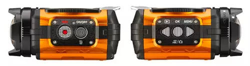 Ergänzend zu den wasserfesten Kompaktkameras, die Ricoh bereits seit einiger Zeit anbietet, erscheint ab Oktober die erste explizite Actioncam WG-M1, die sich mithilfe diverser Halterungen (optional verfügbar) an Helmen und anderem befestigen läßt. Sie ist ohne zusätzliches Gehäuse -- aber mit extra Objektivschutz -- wasserdicht bis zu einer Tiefe von 10m und auch gegen Sand, Stöße uä. geschützt.