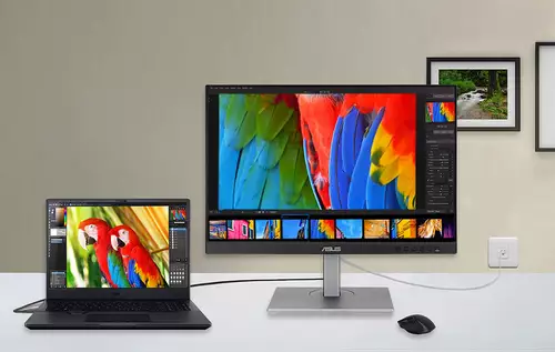 Speziell für Grafiker bietet Asus die QuickFit Virtual Scale Funktion, mit deren Hilfe ein Raster auf dem Bildschirm eingeblendet wird, das die Ausrichtung und Vorschau von Dokumenten in ihrer tatsächlichen Größe vor dem Druck ermöglicht. Mittels der ASUS-ProArt-Voreinstellung (sRGB, rec. 708, DCI-P3, HDR, DICOM,...) können schnelle Anpassung des Farbgamuts vorgenommen werden.
