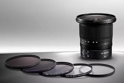 Das innenfokussierende Nikkor Z 14-30 mm 1:4S zeichnet sich vor allem durch seine recht kompakten Abmessungen (89 x 85 mm) bei vgl. geringen Gewicht (485g) aus. Ein besonderes Merkmal – und damit auch nochmal interessanter für Videoanwender – dürfte die plane Frontlinse des neuen Nikkor Z 14-30 mm 1:4S, was erstmalig für ein entsprechendes Weitwinkel den Einsatz von 82mm Schraubfiltern (wie bsp. NDs) gestattet. (Uns sind nur Weitwinkel-Objektive mit 14mm und kürzerer Brennweite bekannt, die auf einen Filterhalter wegen der Krümmung der Frontlinse angewiesen sind).