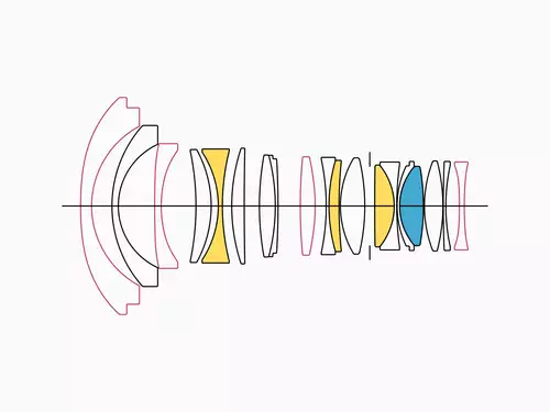 Verantwortlich für die hohe Lichtstärke ist eine entsprechend aufwendige Konstruktion: Das neue 14mm F1.4 DG DN Art besteht aus 19 Elementen in 15 Gruppen - darunter 1 SLD-Glaselement, 3 FLD-Glaselemente und 4 asphärische Linsenelemente. Für Astro-Filmer und -Fotografen von Interesse: Sigma gibt an, hier vor allem sagitales Koma, Gosting und Flares stark reduziert zu haben, womit insbesondere Punktlichtquellen besonders präzise abgebildet werden dürften.