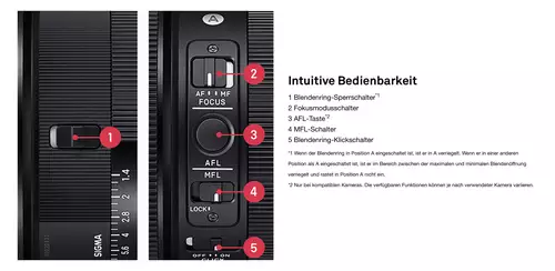 Der HLA (High-Response Linear Actuator) soll lt. Sigma eine schnelle, leise und hochpräzise Autofokussierung ermöglichen Um die Leistung zu erhalten und gleichzeitig ein Objektiv mit großer Blende zu unterstützen, verwendet das Objektiv leichte Materialien wie Polycarbonat TSC (Thermally Stable Composite), dessen thermische Schrumpfungsrate der von Aluminium entspricht, und Magnesium an geeigneten Stellen, um das Gewicht zu reduzieren und gleichzeitig Robustheit zu gewährleisten.
