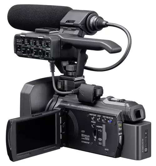 Wieder einmal, ähnlich wie zB. mit der MC50, präsentiert Sony Professional eine aufgewertete Version eines Consumermodells. In diesem Fall ist es interessanterweise der aktuelle Projektor-Camcorder PJ740, der über ein aufschraubbares Zubehörmodul um zwei XLR-Anschlüsse und einen Haltegriff erweitert wird. Die als NXCAM lancierte NX30 kann also nach der Aufname das Material projizieren, allerdings nicht in HD-Auflösung (die PJ740 schafft jedenfalls nur 640 × 360 Pixel). Mit der NX30 hält auch die hocheffektive neue Bildstabilisierung "Balanced Optical SteadyShot", bei der die gesamte Optikeinheit inkl. Sensor flexibel gelagert ist, indirekt Einzug ins Profisegment. Sie hatte uns ja schon beim Test der PJ740 überzeugt.