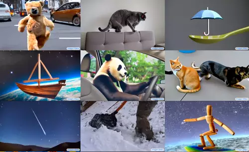Die folgenden Beispielen (auf der Seite von Imagen Video finden sich noch mehr) demonstrieren schön die Fähigkeiten von Google Imagen Video was Raumverständnis, Korrektheit von Bewegungen, Beziehungen zwischen Objekten, Malstile oder auch von Texten angeht: