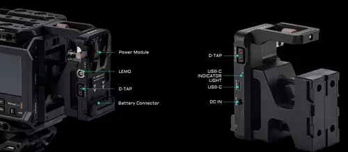 Hierzu zählen: 2x D-Tap (links, recht), USB-C, DC-In sowie 2- Pin Lemo. Da das Powermodul – wie beim Tilta FX6 Cage - zusätzlich an der Topplate angeschraubt wird, dürfte hier eine ähnlich robuste V-Mount Aufnahme entstehen. Für uns auf jeden Fall die konstruktiv bessere Lösung gegenüber reinen V-Mount Adaptern, die einfach nur in die BP-U Aufnahme eingeklickt werden.